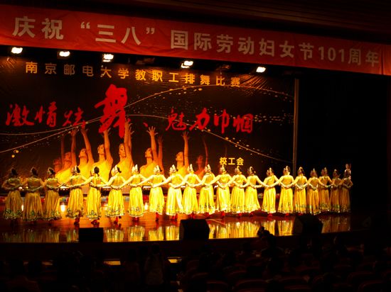 3月25日,学校2011年教职工排舞比赛在仙林校区大学生活动中心隆重举行,此次比赛共有16个队参加,集团排舞节目《草原上的娜仁花》参加了比赛。经过激烈的角逐,集团排舞队技压群雄,以9.70分的绝对优势喜获第一名。