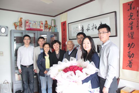 5月3日下午,阳光明媚,时值“五四”青年节即将到来之际,校青年教师联谊会的青年教师代表们,在校工会主席车军华带领下,带着全校青年教师的关心和问候,手捧鲜花,看望了我校99岁高龄的老书记、老红军、老党员秦华礼老先生。