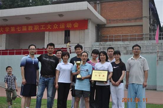在校工会和机关党委的关心和指导下,机关工会通过参加校工会各项体育赛事,通过工间操(太极拳)活动带动了整个机关的全民健身活动,使机关各部门(单位)涌现出许多体育爱好者、体育活动积极分子和组织者。每次活动都少不了何德红、印为民等老师的热情招呼、积极组织,少不了许桂华、宋福明等老师的认真策划、精心部局,少不了各工会委员、小组长的认真落实和带头参加。运动会正式开始时,工会委员、小组长齐上阵,按照分工敦促队员按时参赛,做好保管衣物、发放食品、抄送成绩、代领奖品、摄影等基础工作,各司其职、井然有序;海外处的蒋元老师自始至终坐阵机关帐篷,精心为大家服务,令队员们感到振奋、温馨。