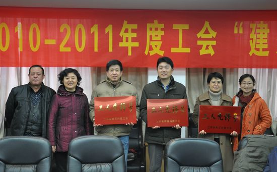会上,校工会主席车军华还宣读了2011年度省教科工会“工人先锋号”表彰决定,向我校荣获“工人先锋号”称号的计算机学院的无线传感网技术学科团队、电子科学与工程学院的电子创新类竞赛教练团队、通信与信息工程学院的通信技术研究所表示祝贺并颁发了奖牌。