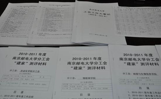 此次建家评比,采用量化标准、实事求是、公开公正打分的考核办法,从组织建设,教代会和维权工作,宣传教育工作,文体工作四大方面,对各分工会两年来的“建家”工作进行全面检查、验收和评比。会上,各分工会主席依次汇报了本单位两年来的“建家”工作。与会全体人员在听取汇报、查看资料后,通过抽签形成“建家”评分小组。“建家”评分小组根据《南京邮电大学分工会‘建家’测评办法》和《南京邮电大学分工会‘建家’综合评分办法》,于12月30日对各分工会“建家”工作进行了评分,最终评选出10个“模范教工之家”, 8个“先进教工之家”和5个“合格教工之家”。