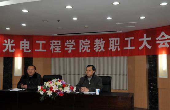 根据《南京邮电大学二级教职工代表大会实施办法》,学院建立由全体教职工参加的教职工大会制度。光电工程学院首届教职工大会第一次会议于2010年12月17日召开,一年多以来,全院教职工自觉发挥主人翁作用,积极参与学校和学院的民主管理。辛勤工作在学科建设、教学、科研一线。经学院党政联席会议批准,首届教职工大会第二次会议于2011年12月28日下午在三牌楼校区科学会堂一楼演讲厅召开,院党委书记、工会主席胡玉东主持会议,院长梁忠诚作《光电工程学院2011年工作总结和2012年工作要点报告》,指出2011年对于学院“十二五”规划的顺利实施至关重要,学院以科学发展观为统领,抓住“一条主线、两个重点、三大内涵和四项目标任务”。学院今后贯彻学校内涵大会精神,凝心聚力抓内涵,一心一意谋发展,全院上下对学院的未来发展充满信心。