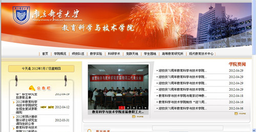 为了更好的适应学院发展需要,经过前期的紧张筹备制作,教育科学与技术学院官方网站(http://edu.njupt.edu.cn/)正式改版,从2012年5月17日(世界电信日)起,改版后的网站将以崭新的面貌出现在师生面前,正式承担起学院展示、宣传的重任,为广大师生提供更为贴心的服务。