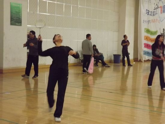 11月,校2012年度羽毛球大赛火热开打,在学院党政以及学院工会领导的高度重视和支持下,组成一支参赛队伍,共有9名队员,参与率达50%。本次比赛为团体赛,设置男子单打、女子单打、女子双打、男子双打、男子单打等5个比赛项目,每个项目采用11分赛制,三局两胜。我院与通达学院、人文学院、马克思学院和海外学院分在A组,经艰苦拼搏,我院教职工代表队展现了良好的精神风貌和团队精神,敢打敢拼,充满激情,获得小组第三的好成绩。