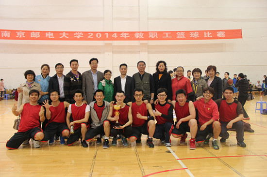 由校工会组织的2014年教职工篮球比赛,经过为期两周的小组循环和交叉淘汰的奋力角逐,机关篮球队和通达篮球队分别以上、下半区第一名的成绩进入决赛。4月18日下午,南邮仙林体育馆内人声鼎沸、热闹非凡,翘首期盼的师生怀着激动的心情前来观看这场巅峰对决。主席台上一顺排列着熠熠闪光的八个奖杯,副校长张志华、工会主席彭洋、体育部主任薛雨平等领导亲临赛场观摩,我院党委副书记王立辉,院长助理甘宗盛、卞文献,工会主席余素兰率领通达师生临场助阵。
