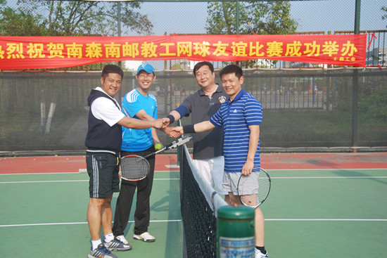 2014年4月14日,为加强南京邮电大学与南京森林警察学院两校的交流,提升两校教职工网球水平,促进教学运动一体化,我校教职工网球协会率队参加由南森、南邮共同主办,南森承办的“首届南森南邮教职工网球友谊赛”。