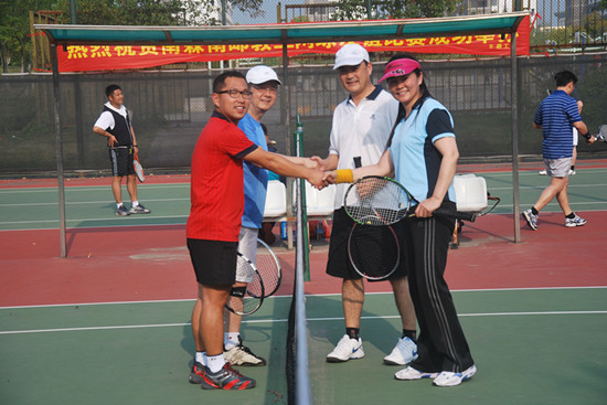 友谊赛当天,南京森林警察学院的常务副院长张治平主持了友谊赛的开球仪式。此次比赛主要进行了男单、男双和混双项目的较量。本着友谊第一,比赛第二的精神,双方不但在各项比赛项目中获得了优异成绩,更是在网球运动中获得了友谊、健康和快乐。最后两校老师握手致谢,活动在一片和谐氛围中圆满结束。