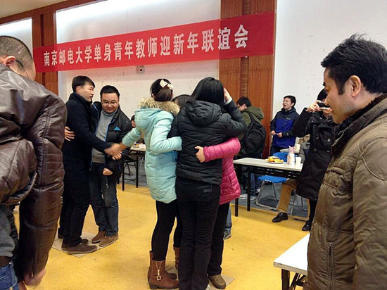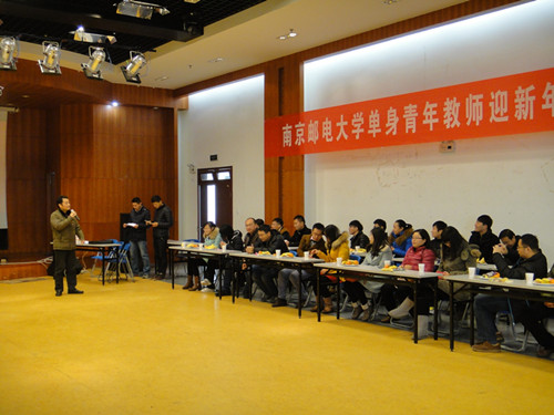 2014年12月18日下午,校工会在大学生活动中心多功能厅举办单身青年教师迎新年联谊活动。到会的有副校长张志华教授、校工会彭洋主席、校工会陈麦玲副主席及来自全校四十多名单身青年教师。活动在轻松愉快的气氛中进行,首先由副校长张志华教授讲话,他祝福大家在新的一年里工作顺利,生活甜蜜,事业更上一层楼!在两位主持人的引导下,青年朋友们做了一系列活泼有趣的游戏,通过游戏,活跃了气氛,放松了身心,增进了相互间的了解,收获了友谊,大家度过了一个开心的下午。