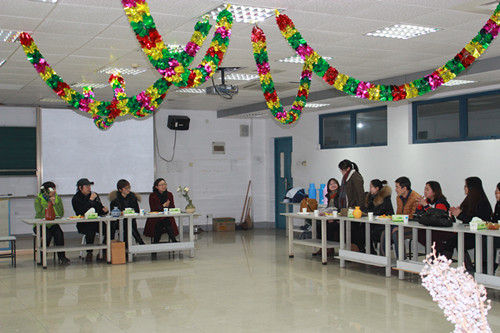 近日,传媒与艺术学院在教4-608召开2014年度学院总结大会暨新春联欢会,学院院长王平,党委书记黄婷副院长徐磊,党委副书记邓艳华,院长助理杨振和出席会议,学院全体教职工参加大会。