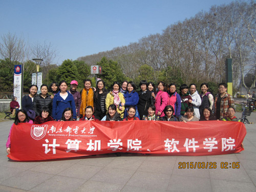 参加活动的女职工在指定地点-苜蓿园地铁站集合后,兴致勃勃地按事先安排的路线行进。女同胞们带着轻快的心情,踏着春天的脚步,尽情地享受明媚的春光。有的老师平常就勤于锻炼,所以行进速度比较快,队伍中很快就不见了她们的踪影。有的老师平时忙于工作和家庭,鲜有机会出来放松,她们乘此机会,沿途观赏了梅花谷、前湖、明城墙、琵琶湖、玄武湖等景点。大家沐浴在春天的气息中,零距离欣赏路边的田园风光,不时用相机捕捉着路上的风景,不知不觉就抵达了终点-学校锁金村校区。约5.5公里的路程,走得最快的老师耗时约1小时。