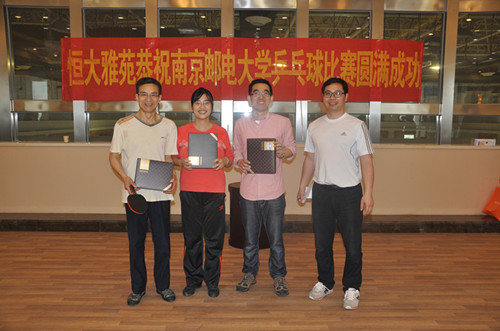为了迎接校工会的乒乓球比赛,同时增进大家的交流和友谊,4月3日下午,在院工会的精心组织下,在恒大集团的热心赞助下,我院全体教师开展了男女单打乒乓赛。大家积极参与,热情高涨,三轮激烈角逐历时两小时,赛场不时传来朗朗的笑声和阵阵叫好声。