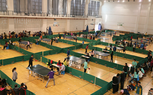 为深入开展全民健身活动,丰富教职工的业余文化生活,4月11~12日,我校2015年教职工乒乓球比赛在仙林校区体育馆举行。本次比赛,得到了各二级分工会的大力支持,广大乒乓球爱好者踊跃报名,部分校领导及单位负责人也亲临现场并参加了比赛。来自全校23个分工会的160名教职工参加了本次比赛。