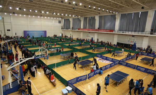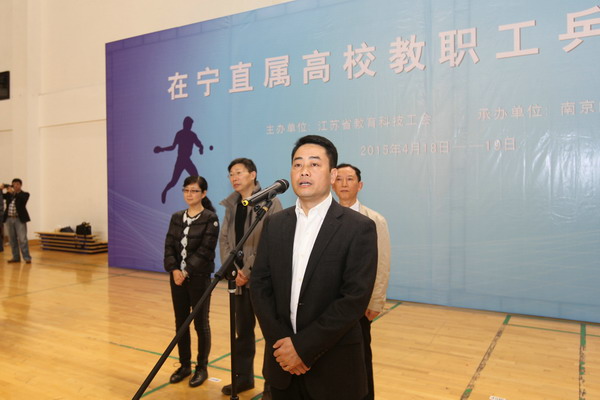 4月18-19日,由江苏省教育科技工会主办、我校承办的在宁直属高校教职工乒乓球赛在我校仙林校区体育馆举行。副校长张志华致欢迎辞,江苏省教育科技工会主席胡雪春宣布比赛开幕。