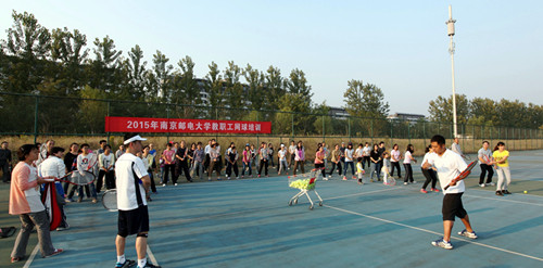 2015年10月17日,南京邮电大学教职工网球培训开班仪式在仙林校区主体育场北区网球场举行。仪式由校工会陈麦玲副主席主持。