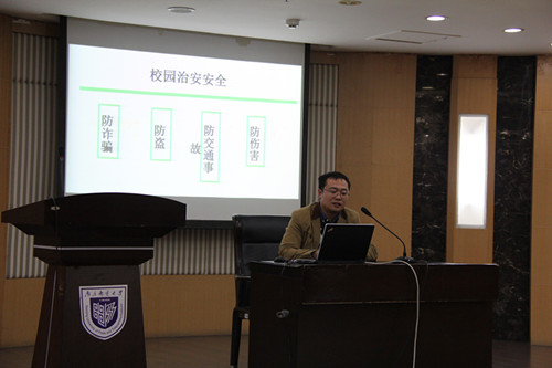在全国消防安全日即将到来之际,为了增强广大教职工消防安全意识,避免火灾和治安案件发生,2015年11月3日下午,通信与信息工程学院组织全院教职工,于三牌楼校区科研楼一楼报告厅,听取了校园治安消防安全讲座。讲座由我校保卫处消防科许科长和治安科蔡科长主讲。学院党委书记李飞主持讲座。