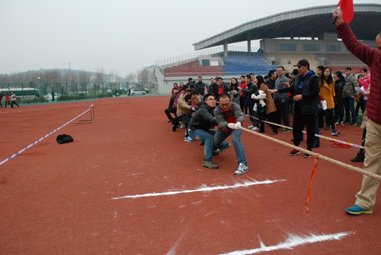 为丰富教职工文化生活,增强凝聚力,激发教职工参与体育活动的积极性,2015年12月9号,由校工会主办的“拔河比赛”在仙林校区北操场举行。来自各基层工会的20余支队伍共200多名教职工参加了比赛,副校长张志华、校工会主席彭洋、陈麦玲副主席等领导老师亲临现场观看比赛并为老师们呐喊助威。教育科学与技术学院分工会精心组织,最终由院党总支书记刘蒙领队,院党总支副书记、院工会主席王小露和各系(中心)选派的10名教师组成参赛队伍。