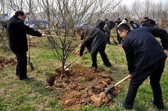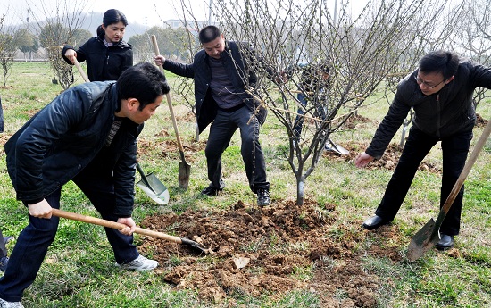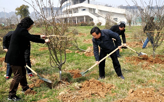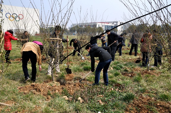 3月14日,在仙林校区北门体育场南侧,机关党委、机关工会开展了一年一度的植树活动。大家齐心协力种下了100棵海棠。校党委书记刘陈,党委副书记、纪委书记朱永平,副校长王承宽、王宗荣、张志华等校领导及机关党委、机关工会所属部门70多人参加了此次植树活动。
