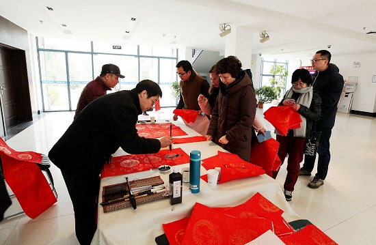 写春联、贴春联是我国春节的传统习俗,也是辞旧迎新过大年的一种象征。为营造欢乐祥和喜庆的节日气氛,活跃校园文化氛围,临近假期,传媒与艺术学院面向全校教师开展“迎新春 送春联”活动,冯震、金之皓、范建华三位老师现场书写对联,让老师们切实感受到浓浓的假期和节日气息。