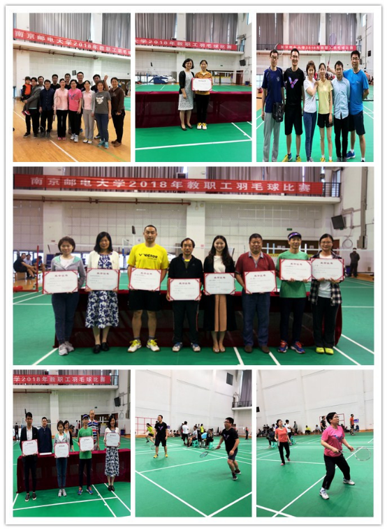 5月5日至6日,为提高教职工身体素质,促进教职工之间的交流沟通,由校工会主办、体育部协办的南京邮电大学2018年教职工羽毛球比赛在仙林校区体育馆拉开帷幕。本次比赛共有23个分工会代表队伍参加。我院选派教职工代表队参加比赛,并取得了优异成绩。