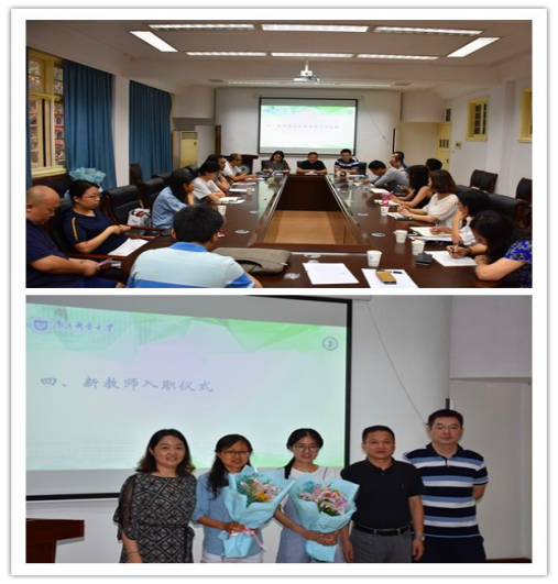 最后,学院进行了新教师入职仪式,尹书记为新入职的教师佩戴了校徽,孙院长为其送上了鲜花,并与她们合影留恋。全院教师以热烈的掌声欢迎他们加入南京邮电大学,成为现代邮政大家庭一员。