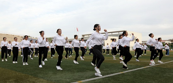 比赛中,老师们身着统一的白色上衣,面带阳光自信的笑容,在劲爆的背景音乐《光芒》的“照射”下,用整齐划一、标准连贯的动作、活力四射的动感肢体、激情动人的健身舞步展现了别样的青春朝气,悦动着生命别样的风采。最终获得了第二名的好成绩。