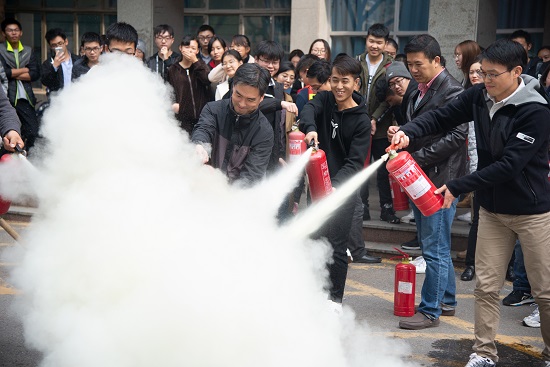 随后,保卫处消防科老师现场讲解了灭火器的使用原理以及相关的注意事项,并亲自演练了灭火器的使用方法。在认真听讲及观摩后,老师和学生们亲自体验了现场灭火的过程,面对熊熊燃烧的火堆,我院师生们表现得十分沉着,手持灭火器,姿势标准、动作熟练,按照灭火的步骤和方法,将汽油燃起的浓烟大火成功地迅速扑灭,做到了冷静沉着地面对突发状况,成功快速地扑灭大火的消防标准。至此,消防安全演练活动圆满结束,师生们有序离开了演练现场。