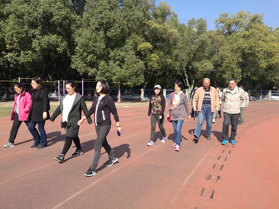 2018年11月9日中午,理学院工会在仙林校区、三牌楼校区、扬州通达校区同时开展“我运动、我健康、我快乐”主题健身走活动,两市、三校区近110名教职工参加了此次活动。