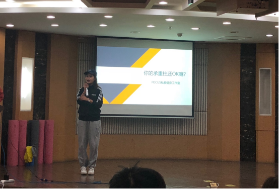 12月12日下午通信与信息工程学院工会邀请南京市FOCUS私教健身训练中心的康复运动教练开设讲座,讲述与示范科学的腰颈肩康复训练方法。