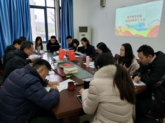 海外教育学院一届五次教职工大会在《团结就是力量》的乐曲声中胜利闭幕。
