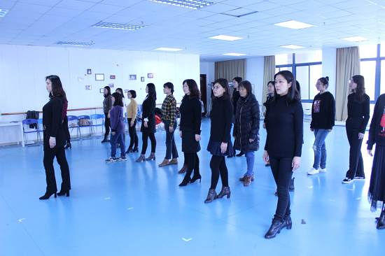 虞老师在两个多小时的讲座中分享了日常工作、生活中如何保持优雅、健康的站、立、坐、行走姿态,教授了大家“九点站墙”等训练技巧,并逐个进行指导。同时展示了帽子、纱巾、墨镜、伞、折扇、团扇等配饰的优美运用。