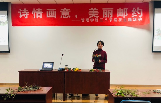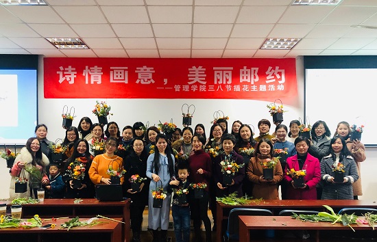 三月,一个花开芬芳的时节,伴随着春天的脚步,一年一度的三八妇女节如约而至。2019年3月8日中午,管理学院分工会举办的“诗情画意,美丽邮约”——三八节插花主题活动在三牌楼校区MBA中心举行,管理学院分工会负责人、工会小组长等40余名女教职工欢聚一堂,共度美好时光。