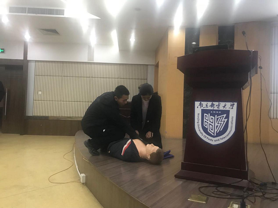 学校保卫处消防科张凯老师为现场师生讲解了消防安全相关知识,实验室、教研室以及宿舍常见的安全隐患,遇到火灾时如何灭火、自救等;赵宇老师介绍了急救相关知识,包括心肺复苏、人工呼吸等实用技能,并利用人体模型为师生做了演示;在三牌楼校区图书馆,许志伟老师组织师生进行了疏散演练,并现场操作和演示了灭火器的使用。