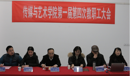 2019年1月15日下午,传媒与艺术学院第一届教职工大会第四次全体会议在文科楼131教室召开。学院党委书记黄婷婷同志致开幕词,对学院辛勤工作的教职工表示衷心的感谢,希望教职工大会充分发挥好在学院民主管理和科学决策中的作用,充分发挥教职工积极性和创造性,为学院和谐稳定、事业发展发挥积极作用。会议由学院副书记兼副院长、工会主席刘远同志主持,全体院领导及教工参加了会议。