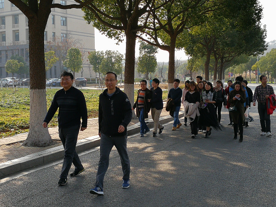 健身走活动从文科楼出发,途经青春剧场、体育馆、鼎山等学校标志性建筑景观后回到学院。恰逢当天风和日丽,大家在健身走的同时,一边欣赏校园美景、感受冬日暖阳,一边交流工作与生活,其乐融融。至今,我院已连续举办了2年冬日暖阳健身走活动,深受学院老师们的欢迎。很多来参与活动的教职工都希望这样的健身活动能够定期举办,既可以锻炼身体又能增进同事间的感情。