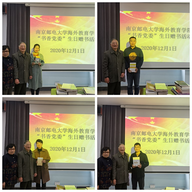 为了鼓励学院教职工在繁忙的工作之余养成良好的读书习惯,不断提升自我文化修养,加强教职工德育建设,贯彻以德树人的指导思想,海外教育学院分工会于2020年12月1日在教1-208会议室开展“生日赠书”活动。学院精心根据教职工们的专业需求和兴趣爱好专门挑选了20余本书籍。活动中,校关工委过铭老师做了主题发言,她指出这一活动充分体现了学院对教工的人文关怀,鼓励学院教职工为合作办学和留学生管理工作继续贡献自己的力量,并期待学院未来开展更多有利于青年学生与老师的活动。接着学院领导对集体生日的老师们表示了祝贺,并且期望他们以书为伴,喜乐有分享,共度岁月长。