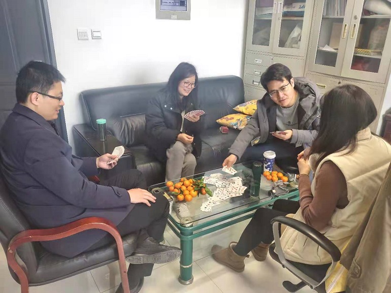 选手们在轻松愉悦的气氛中切磋牌技,配合默契,放松心情,为辛苦的一年画上圆满的句号。经角逐,最终储成祥和黄宝凤组赢得冠军,张昌兵和张子珩组为亚军,张驰和程欣炜组、林晓静和张润驰组为季军,本次比赛在欢笑声中落下帷幕。
