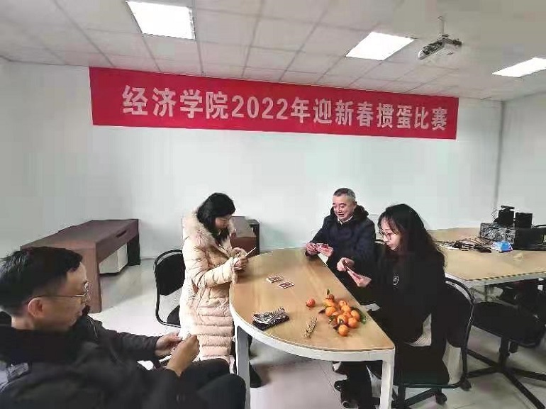1月16日下午,经济学院分工会在文科楼五楼举办2022年迎新春掼蛋比赛,教职工参与热情高涨,共有44名选手自由组队报名参赛。