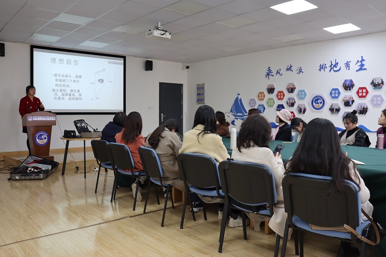 2022年3月4日,为让广大女教师们调节身心,更好展现自信大方、优雅知性的风采,营造关心尊重女教职工、促进女教职工健康发展的良好氛围,地理与生物信息学院分工会邀请中国人力资源和社会保障部CEITIC高级化妆培训讲师何晓娴为学院女教师们开展“遇见更美的自己”为主题的化妆知识讲座。活动由学院党委副书记、工会主席赵伟主持,学院及兄弟院系的20余名女教师参加。 撰稿:徐贵玲 编辑:袁姝姝审核:张效霓 活动现场,何晓娴老师凭借多年丰富的化妆实践经验,从专业化的角度从基础护肤、妆容打造、脸型构造、化妆品的选择等等详细全面的讲解了美妆知识及技巧。同时,为了让大家更直观的感受美妆,何老师现场为学院张晶晶老师进行了清洁、基础护肤到彩妆的整套演示和示范。