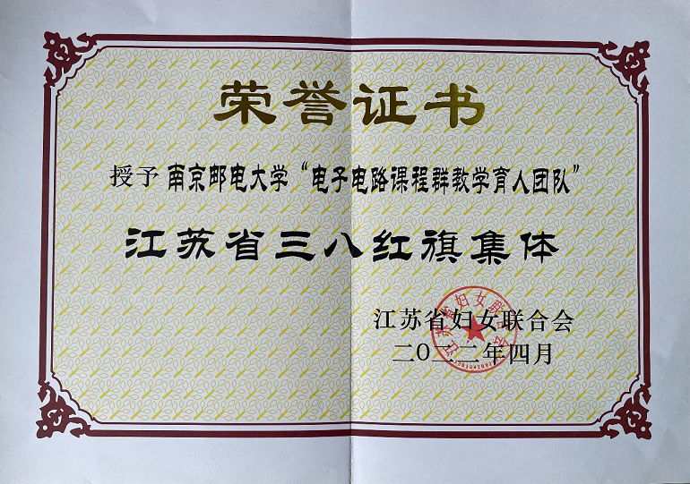 近日,江苏省妇联发布《关于表彰2021年度江苏省三八红旗手标兵,三八红旗手(集体)的决定》。我院“电子电路课程群教学育人团队”获评2021年度江苏省三八红旗集体光荣称号。