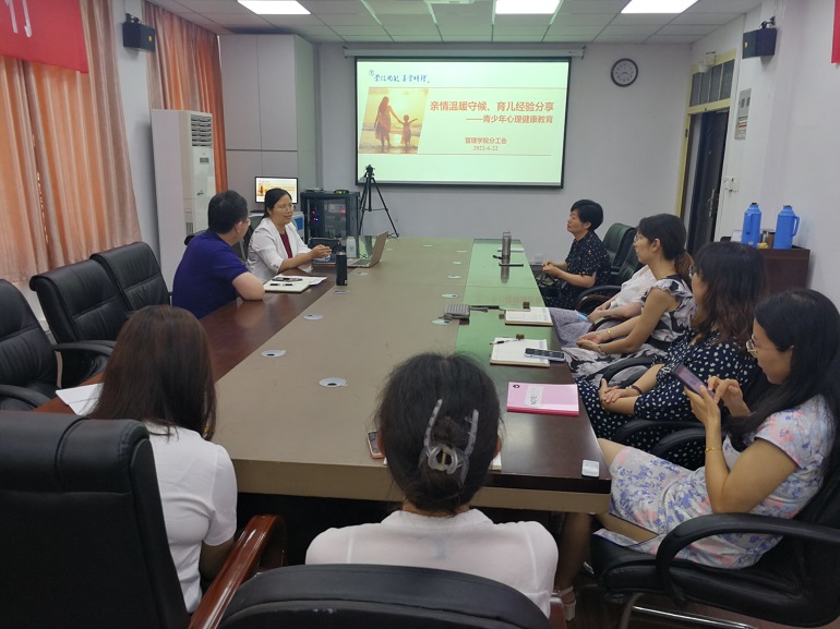 家庭教育是孩子成长的第一课堂,如何正确的培养育儿观念和方法成为多数老师们关注的话题。在暑期来临之际,为了提升教职工子女教育水平,助力“管二代”的健康成长,管理学院分工会于6月22日下午举行“亲情温暖守候、育儿经验分享——青少年心理教育”活动,本次活动采取线上线下相结合的方式进行,学院分工会主席郭强主持。
