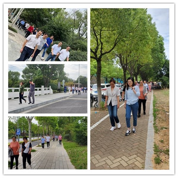 下午2时,参加健身走的教职工们在教五楼下集合,短暂合影之后,老师们从教五西门出发,前往羊山湖公园。沿途观赏了学校的文化景观,强健了体魄,提高了团队凝聚力,也活跃了教职工的文体生活,缓解了老师们平时工作的压力,为学院更好的发展提供了健康保障。