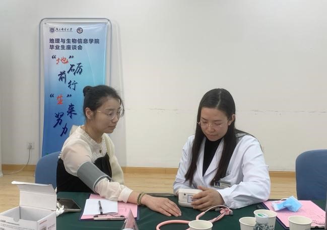 春暖花开季,养生正当时。为更好地服务广大教职工,地理与生物信息学院分工会携手江苏省中医院紫东院区,于2023年4月26日下午在地生学科楼511会议室举办了“地生向未来 健康零距离”义诊活动。江苏省中医院紫东院区党委副书记、纪委书记陈赟,党政综合办主任孙慧等领导专家,我院党委领导班子、骨干教师代表以及广大问诊教师参加此次活动。活动由地理与生物信息学院党委副书记、副院长赵伟主持。