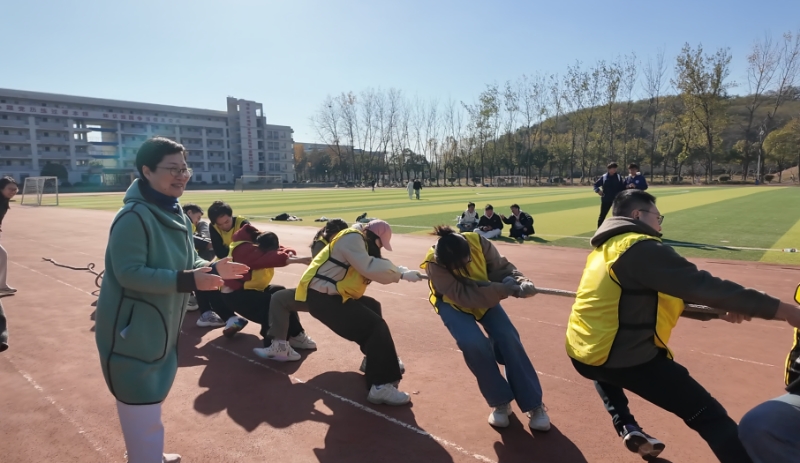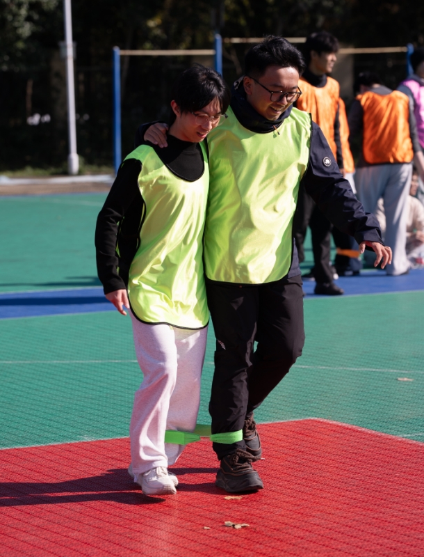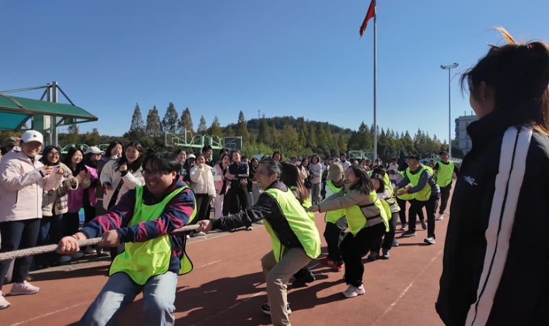 活动在欢快的音乐和集体热身中拉开序幕。本次运动会设有运送乒乓球接力、跳绳接力跑、两人三足和拔河四个项目,集趣味性与协作性于一体,适合各类师生参与。比赛中,选手们配合默契、奋勇争先,现场气氛热烈。最终,本科生三年级代表队凭借出色表现夺得总积分第一,荣获冠军。