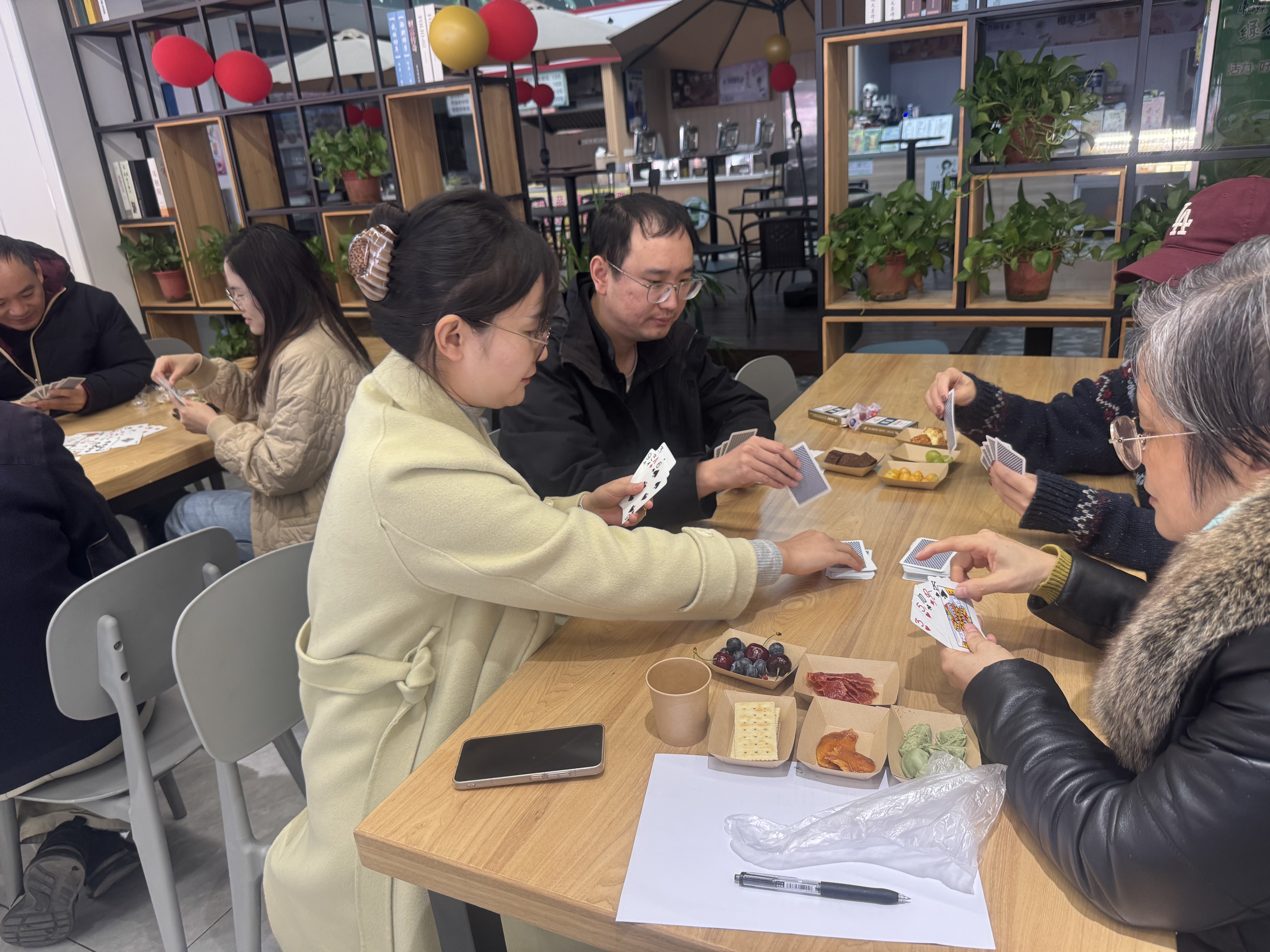学院工会精心筹备,为参赛选手准备了丰富的水果、点心和饮料,让大家在紧张比拼之余,能及时补充能量,感受贴心关怀。线下赛场氛围热烈,象棋、五子棋和掼蛋比赛同步开展。参赛教职工们专注凝神,在棋盘上排兵布阵、斗智斗勇,每一步落子都尽显策略与思考;掼蛋桌前,搭档间默契配合,时而低声研讨战术,时而果断出牌,现场欢声笑语不断。线上赛场同样精彩纷呈,王者荣耀比赛中,教职工队伍凭借精湛操作和默契团战展开激烈角逐,直播间内互动频繁,气氛持续高涨。