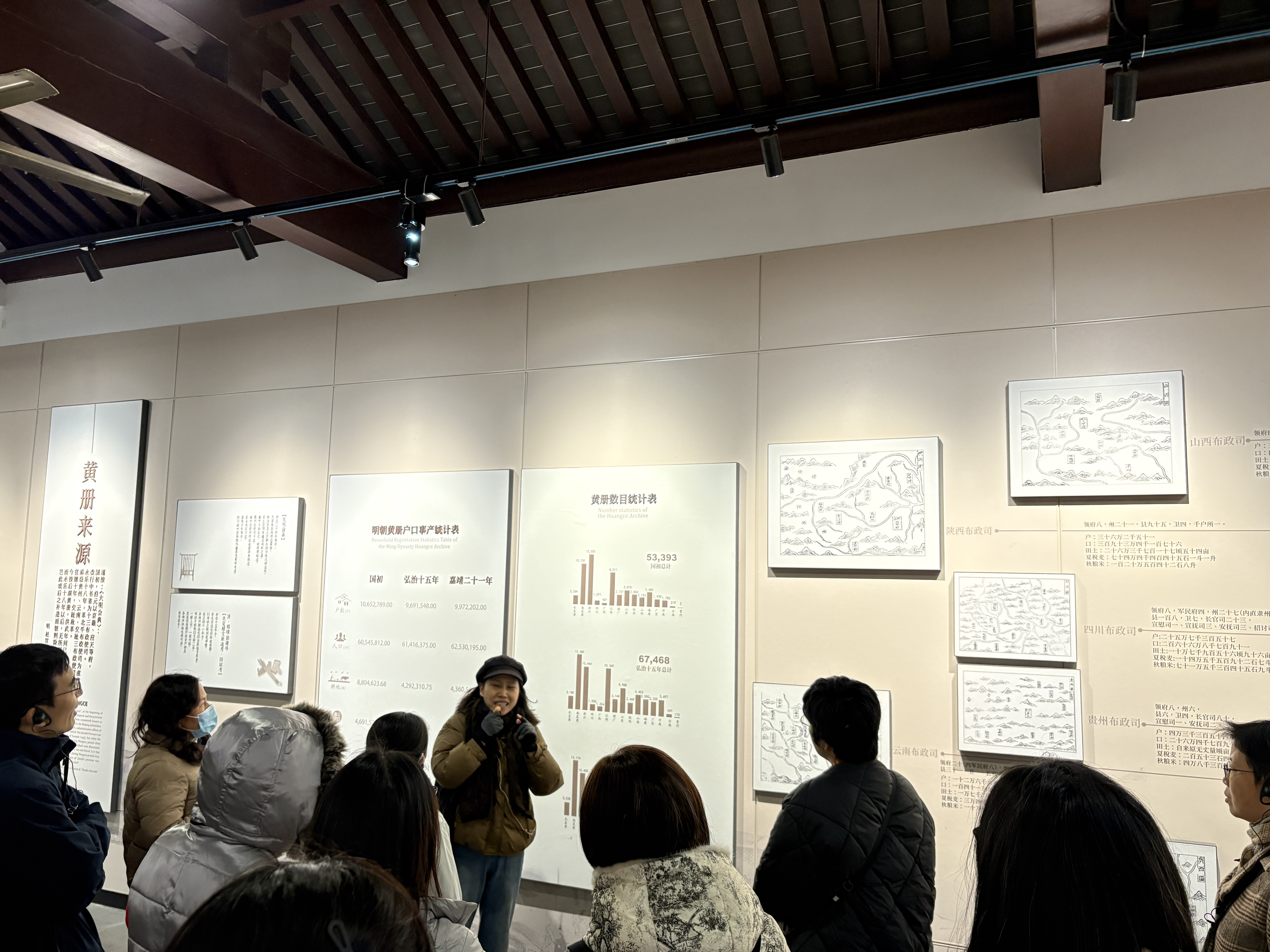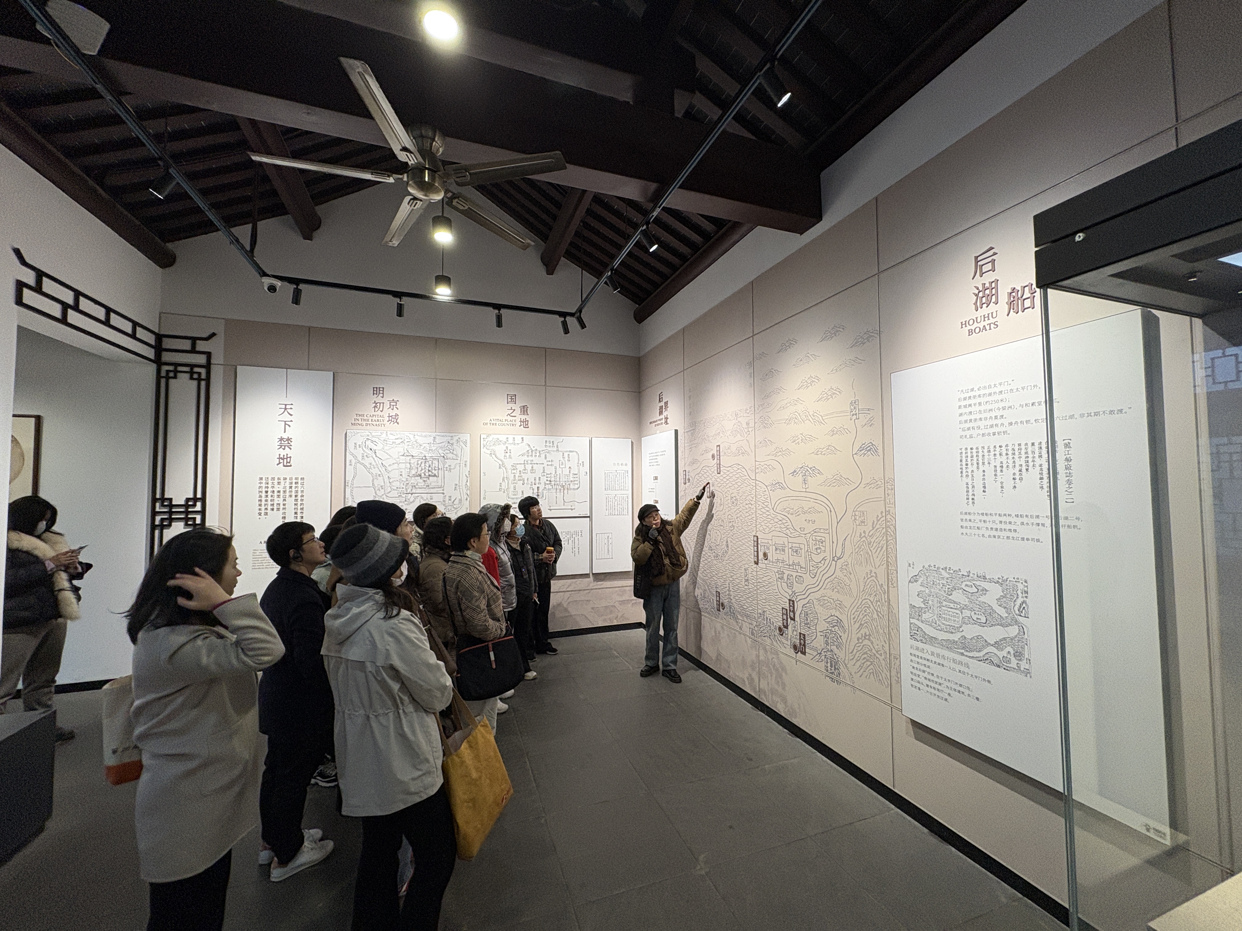 本次寻访的重头戏,是位于梁洲的黄册库遗址展览馆。余宏玲老师结合书中对明代国家治理体系的记述,详细解析了黄册库作为 “古代国家档案中枢” 的历史地位:“这里曾收藏着全国的户籍赋税档案,玄武湖的隔绝环境使其成为天然的档案库房,见证了明代‘编户齐民’的制度智慧。” 展览馆内的文献资料与实地讲解相结合,让老师们对书中 “玄武湖在帝国治理中的独特作用” 有了更深刻的理解。