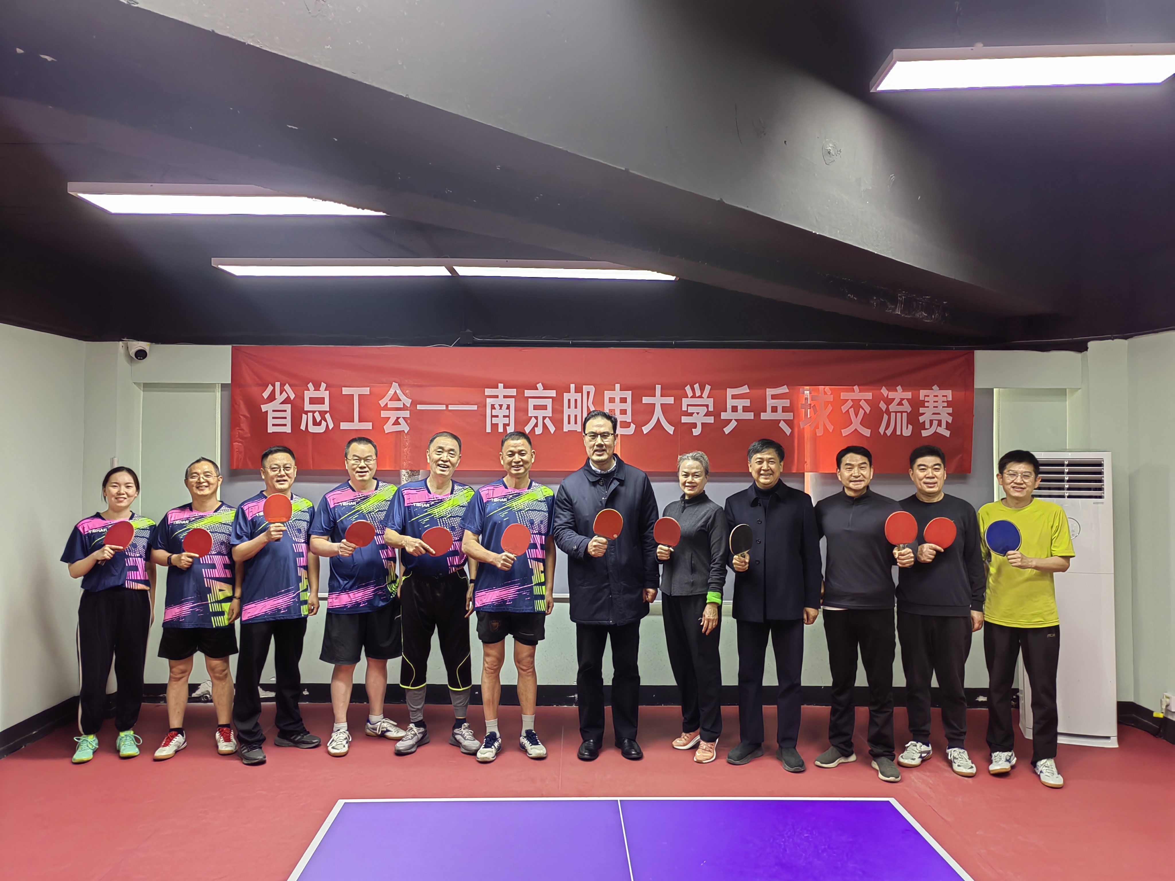 12月4日,南京邮电大学教职工乒乓球协会赴江苏省总工会交流学习,双方代表队开展了一场精彩的乒乓球团体赛。省教育科技工会副主席崔文华、机关工会副主席高顺岭出席活动并指导交流。