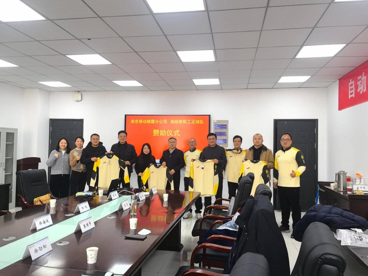 12月25日,南邮教职工足球协会在自动化学科楼321会议室举办球队队服捐赠仪式,南京移动栖霞分公司向南邮教职工足球队捐赠一批冬季综合训练服。