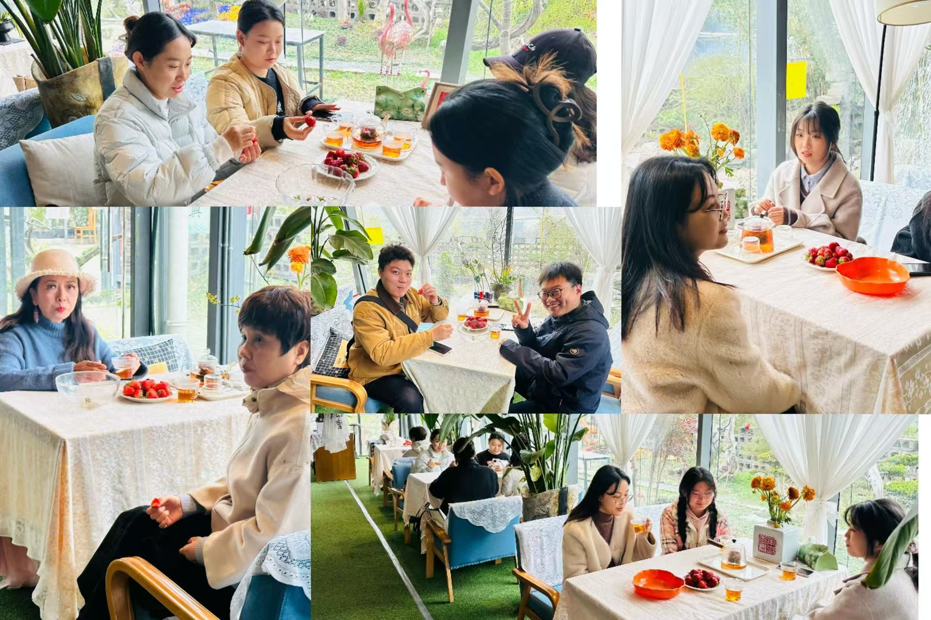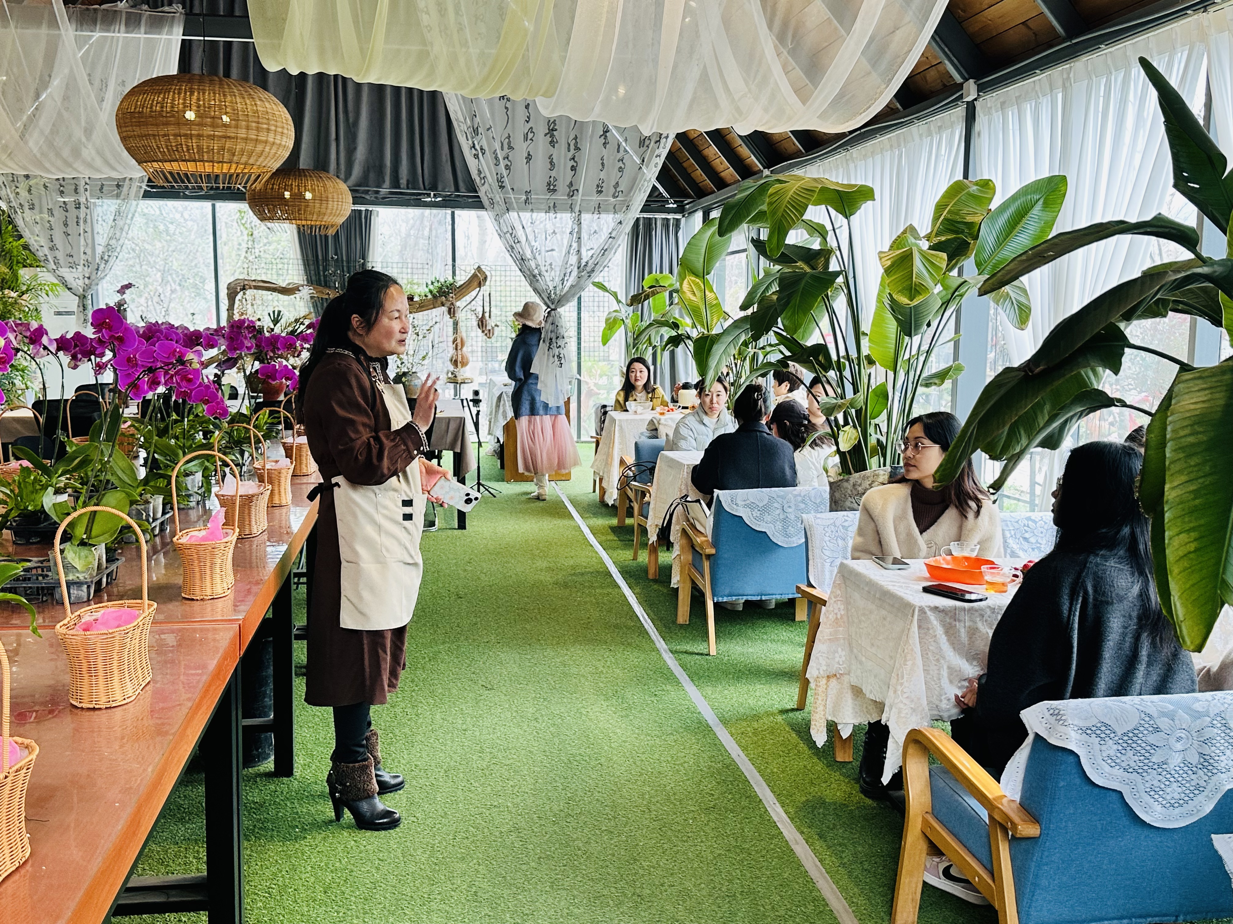 巧手栽兰之余,活动亦安排了惬意的咖啡品鉴时光。樱子花园的雅致环境为这场春日聚会增添了几分诗意,醇厚的咖啡香气与幽幽兰香交织弥漫。老师们手捧温热的咖啡,轻尝精致茶点,或交流花艺心得,或分享生活感悟,在慢时光里感受着节日的温暖与关怀。