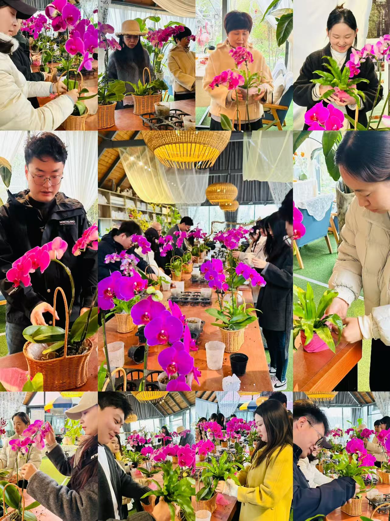 在随后的实践环节中,大家在唐会长的悉心指导下,纷纷化身花艺师。脱盆、修根、填土、布局、装饰……每一个步骤都倾注着专注与巧思。唐会长穿梭其间,不时手把手调整造型,解答疑问。一盆盆错落有致、清雅别致的蝴蝶兰盆景在大家的指尖诞生,或端庄秀丽,或灵动飘逸,正如新时代女性,既能在岗位上独当一面,亦能在生活中绽放独特光彩。