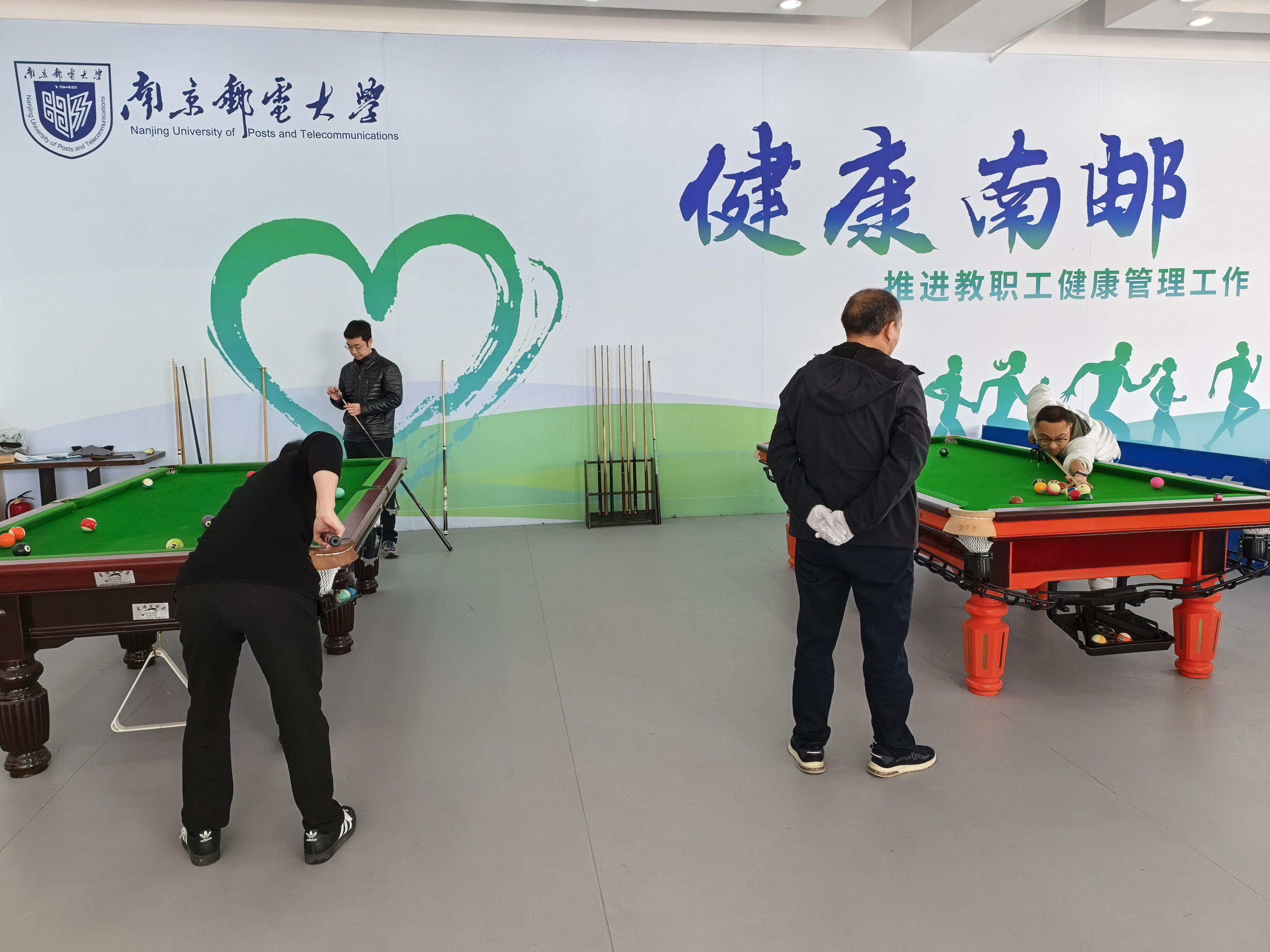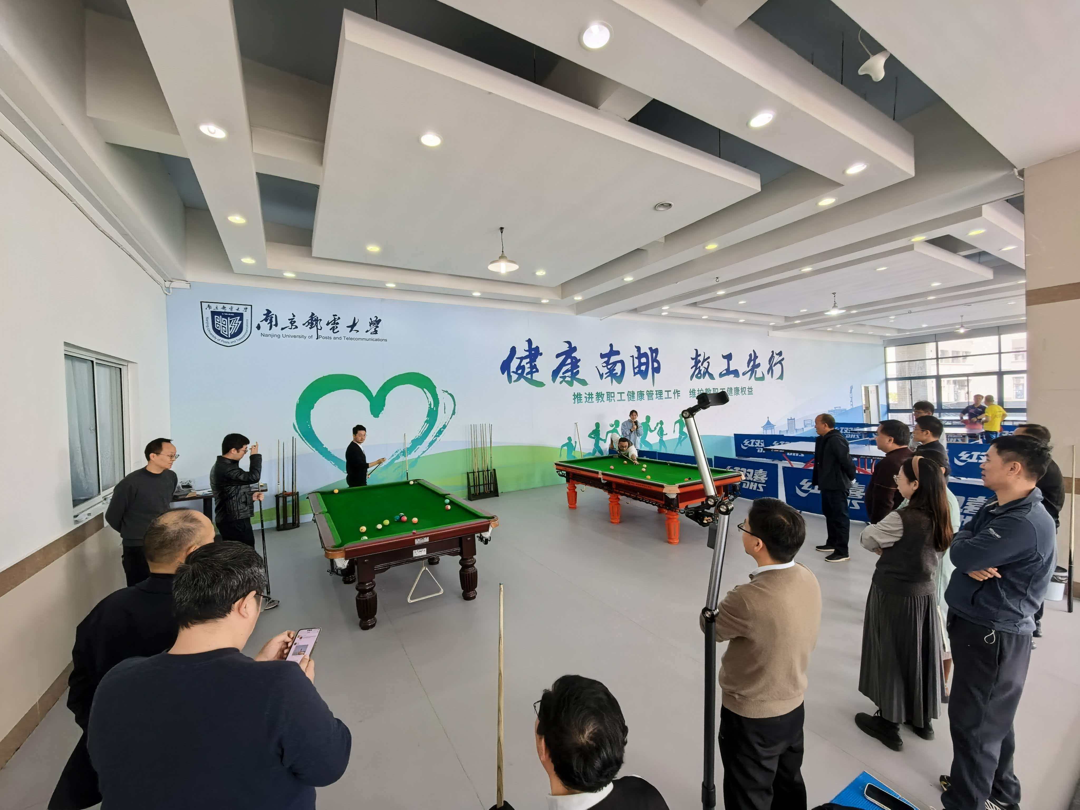 3月23-27日,南邮举办2026年教职工台协“匠心巧运 杆动未来”中式八球团体对抗赛。本次活动由校工会、体育部指导,教职工台球协会主办,全校共有9支队伍、36名教职工参赛。